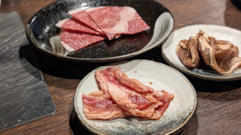 左からイクラ、赤海老、生ホタテ、厚切り鮪