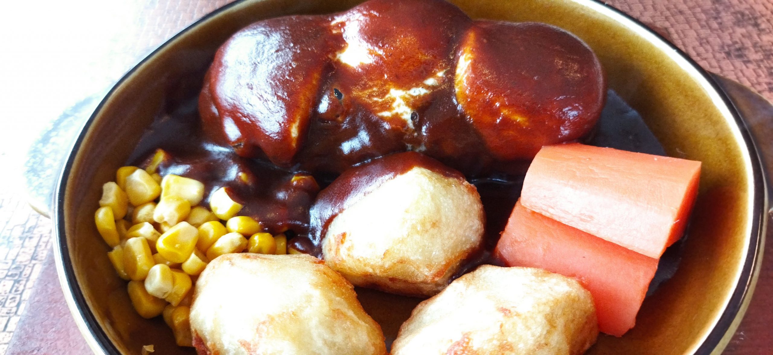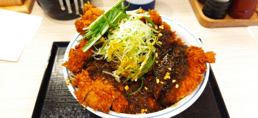 黒胡麻担々チキンカツ丼、ピリ辛で美味しい