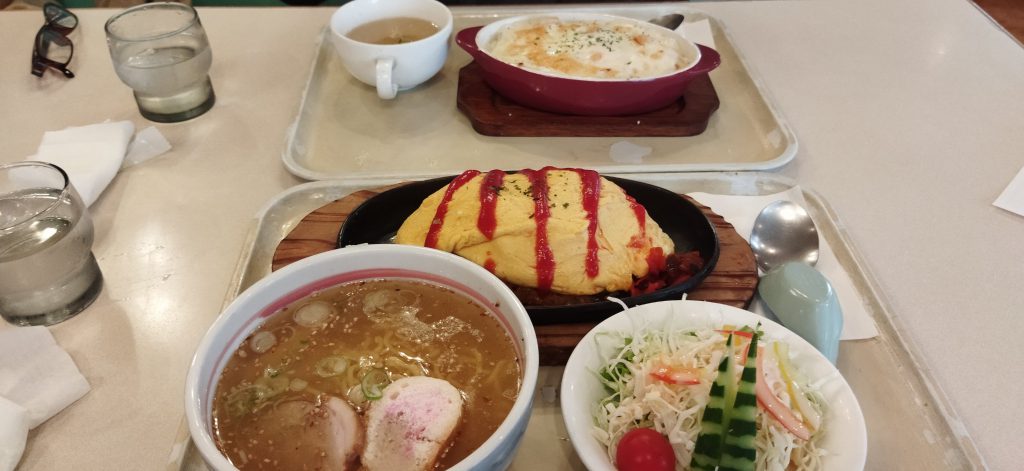 ソーセージエッグ定食ミニ牛皿ライス大盛り420円