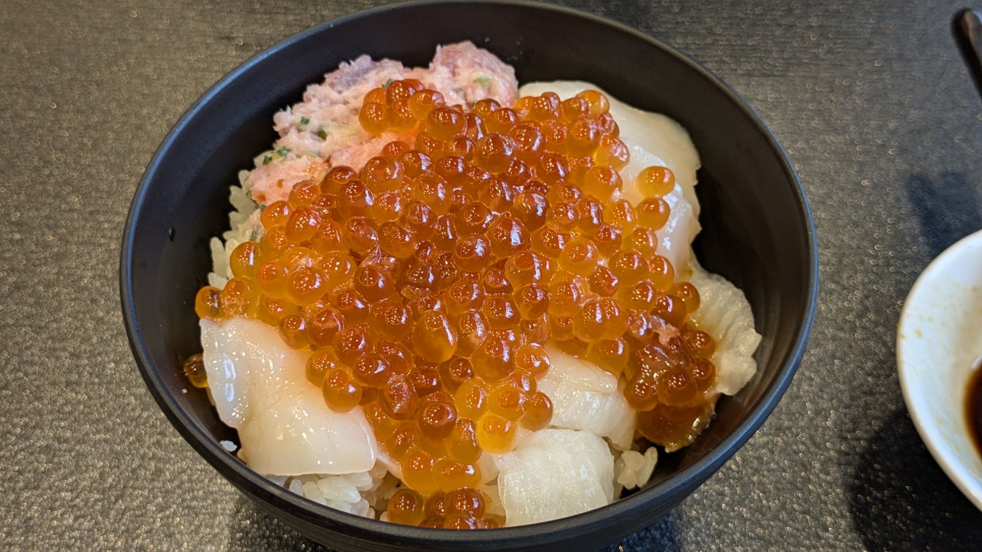 牛皿定食に鮭プラス、牛めしに100円サラダ追加全部で1300円