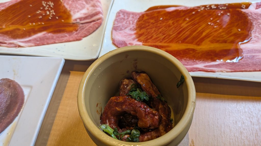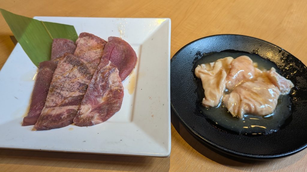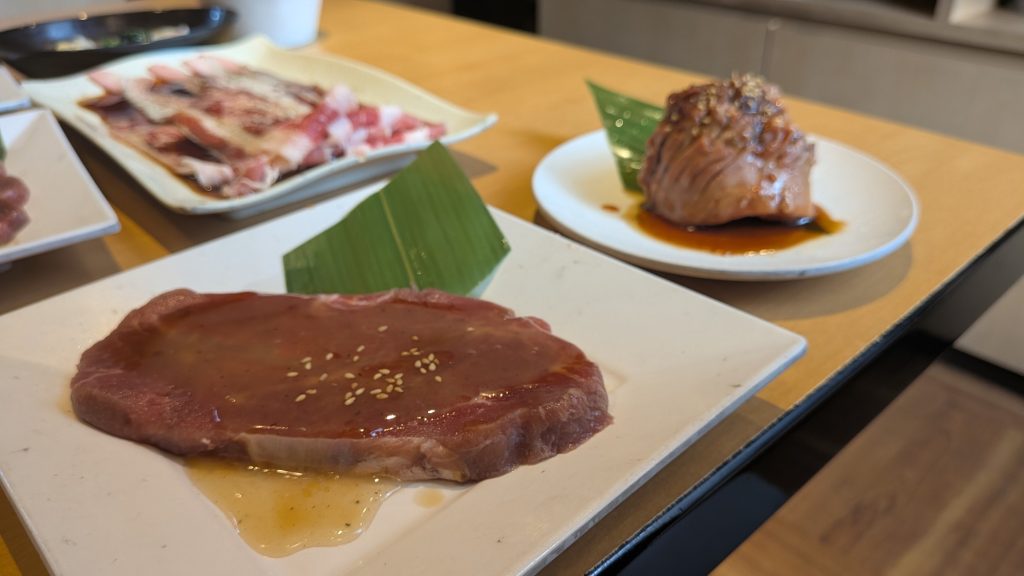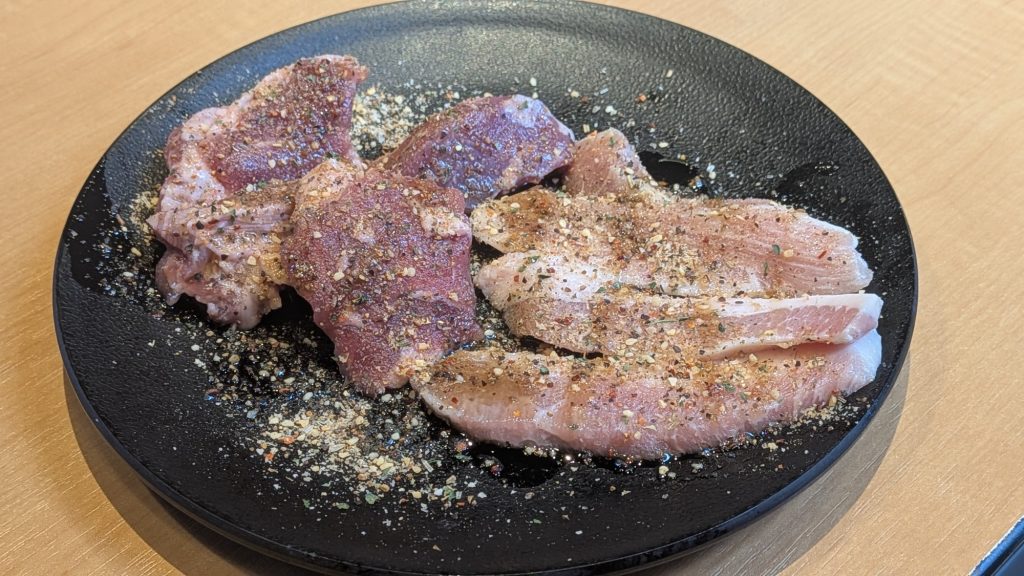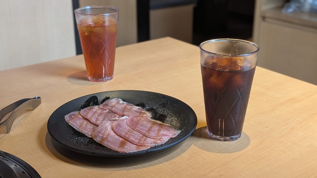 プレミアムコース、コース最初に付く豚タンとドリンクからスタート