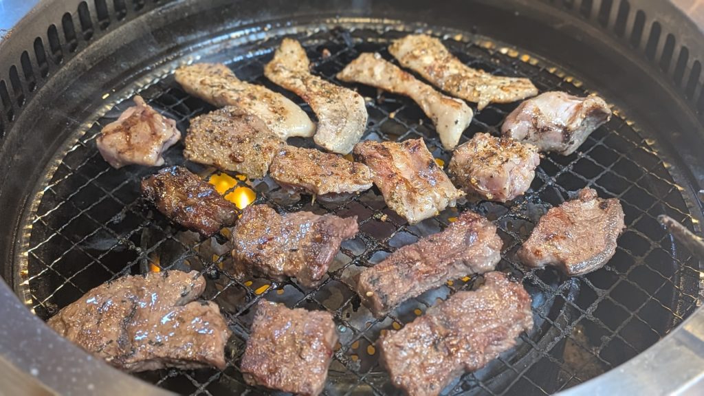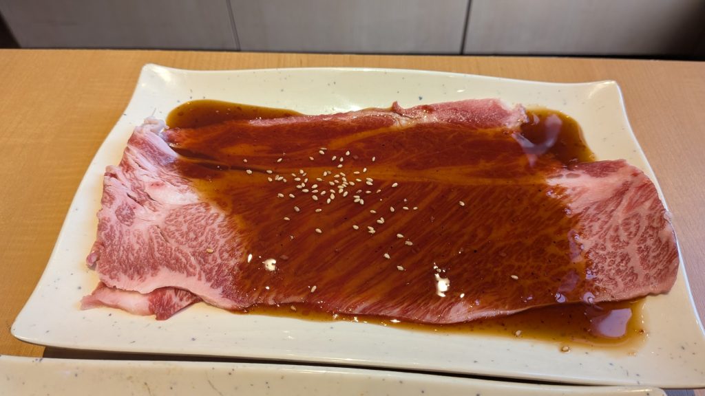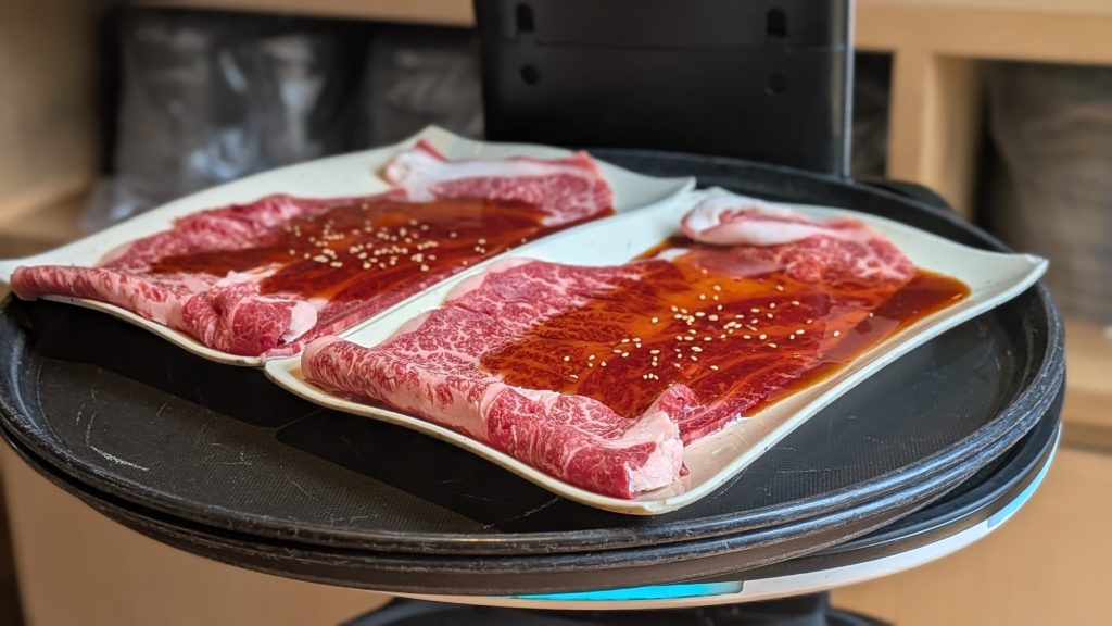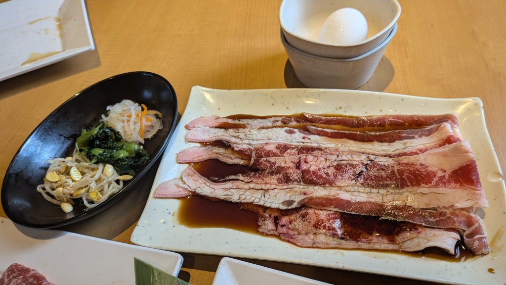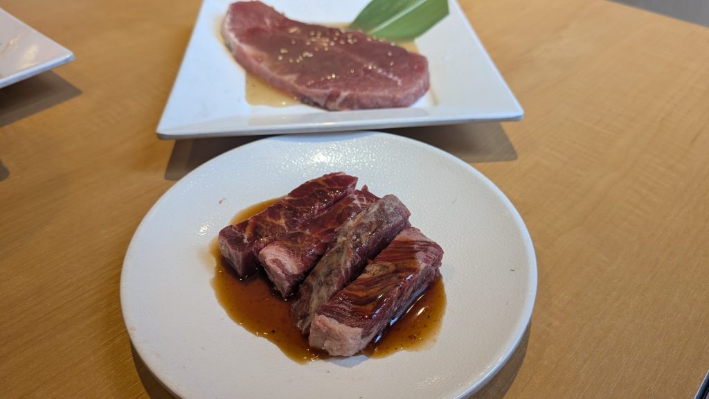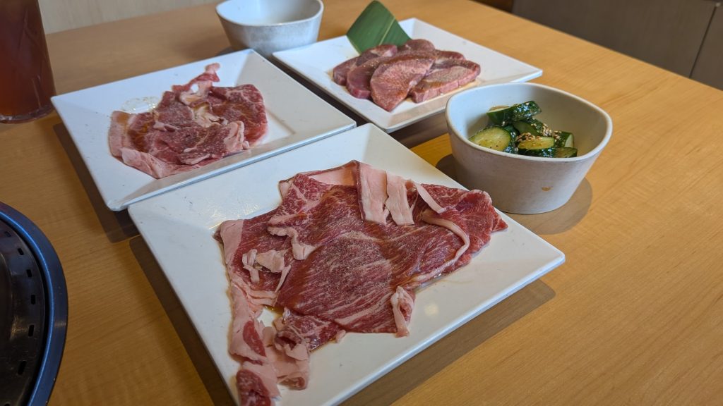 プレミアムコース、コース最初に付く豚タンとドリンクからスタート